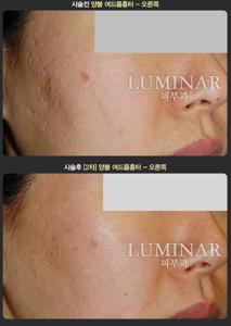 - 프락셔널 레이저 (Fractional laser): 피부에 미세한 구멍을 내어 새로운 조직 재생을 유도하는 시술로, 여드름 흉터나 흉터 자국 치료에 많이 사용됩니다. 통증이 적고 시술 후 회복이 빠르며, 3주 간격으로 2~3회 시행하는 경우가 많습니다.