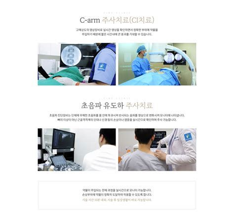 - 신경성형술, 고주파 수핵 성형술 등의 시술 치료법을 적극 사용해 수술 없이 디스크와 협착증 통증을 관리합니다.