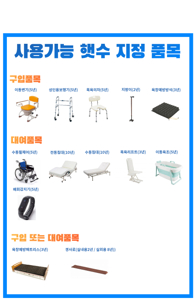 - 복지용구와 보장구: 지팡이, 성인용 보행기, 수동휠체어, 전동리프트, 욕창예방 매트리스 등 다양한 보건용품과 보장구를 판매 및 지원합니다. 건강보험 가입자나 기초수급자에게는 일정 부분 급여나 지원금이 제공됩니다.