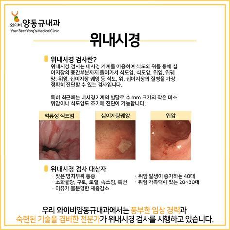 - 위내시경은 위암, 위궤양, 십이지장궤양, 식도염 등 상부 위장관의 다양한 질환을 진단하는 데 가장 기본적이고 정확한 검사입니다.