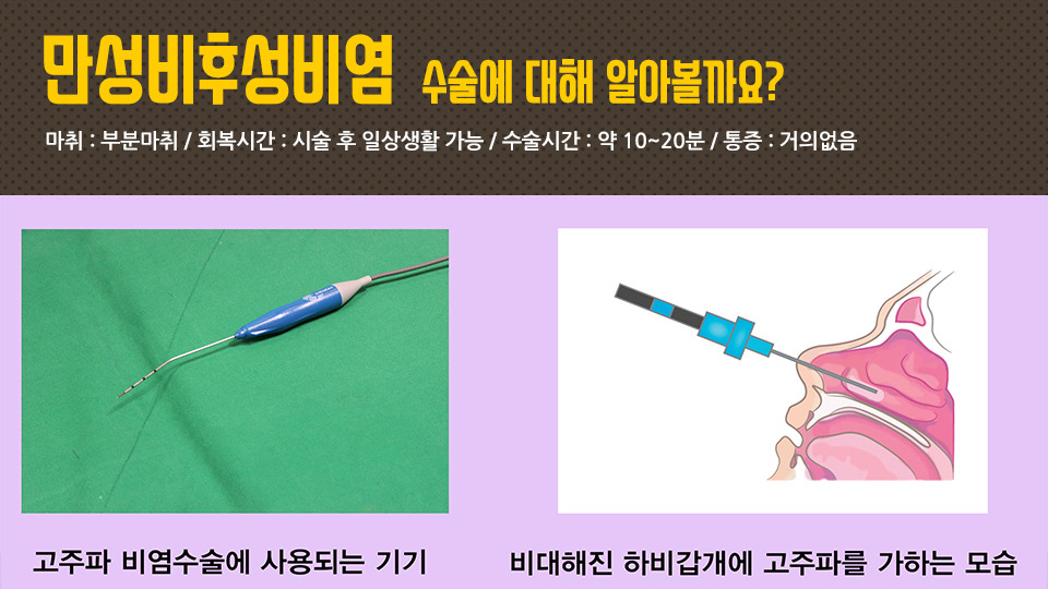 - 멀티미디어 비후성염이나 구조적 문제로 비증상 코막힘 등에서 비갑개 수술, 레이저 수술, 수술 등 증상 개선에 도움이 됩니다.
